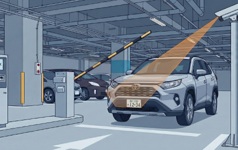 カメラで車両ナンバーを自動認識し、入出庫管理や料金精算を行うシステムです。チケットレス運用により管理負担を軽減し、不正利用防止や運営効率向上に貢献します。 -