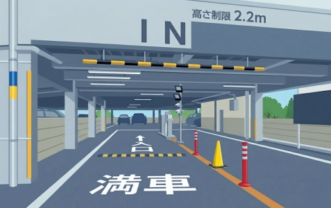 ゲートを設けず、車番認証により入出庫を管理する方式です。渋滞や待ち時間を抑制し、限られた敷地でもスムーズな運営を実現。景観性と回転率向上を両立します。 -