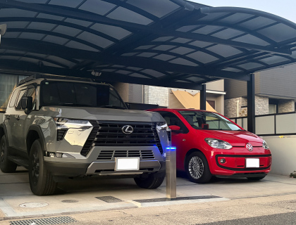 自宅駐車場に設置する電動昇降式ボラード。リモコン操作で車の出入口を物理的に遮断し、無断侵入や車両盗難を防止。後付け設置可能で、景観や使い勝手にも配慮した設計。 -